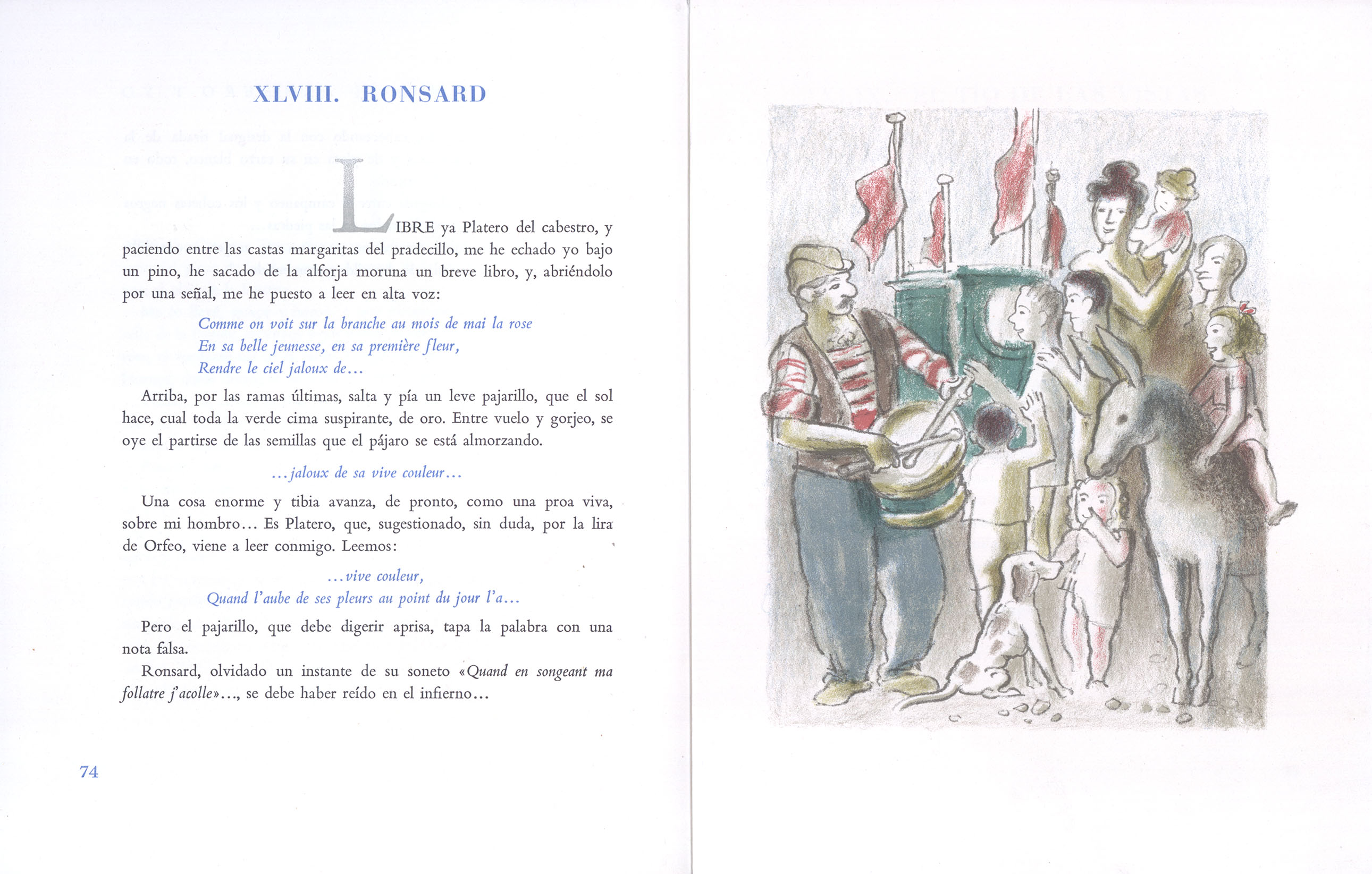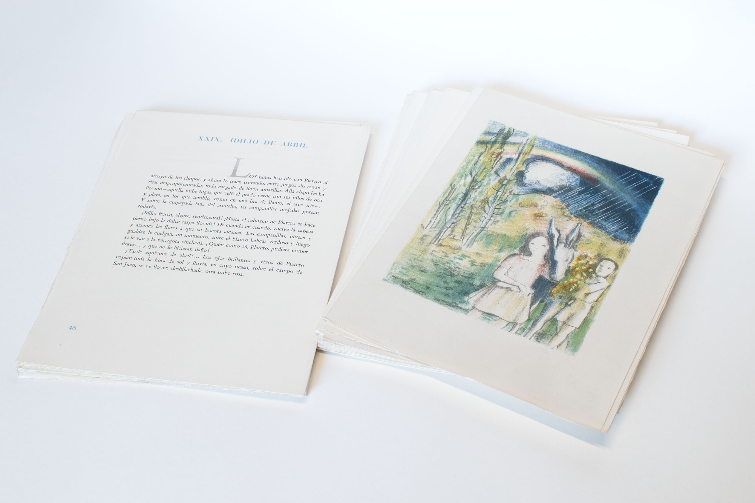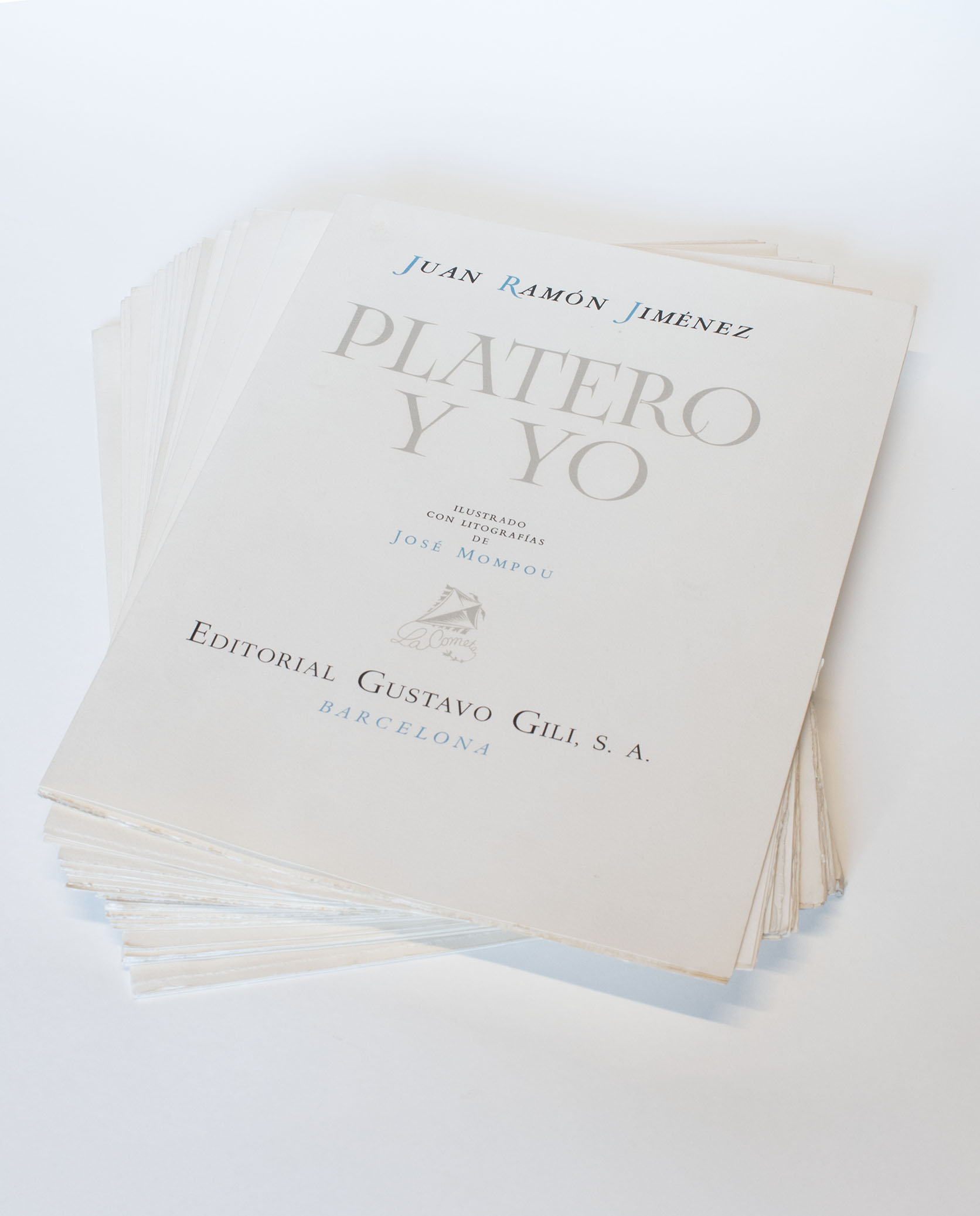 Juan Ramón Jiménez. "Platero y yo. Una elegía andaluza". Ilustrado con litografías de José Mompou, Barcelona: Gustavo Gili, [1947]